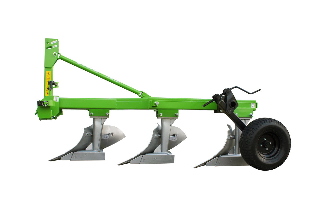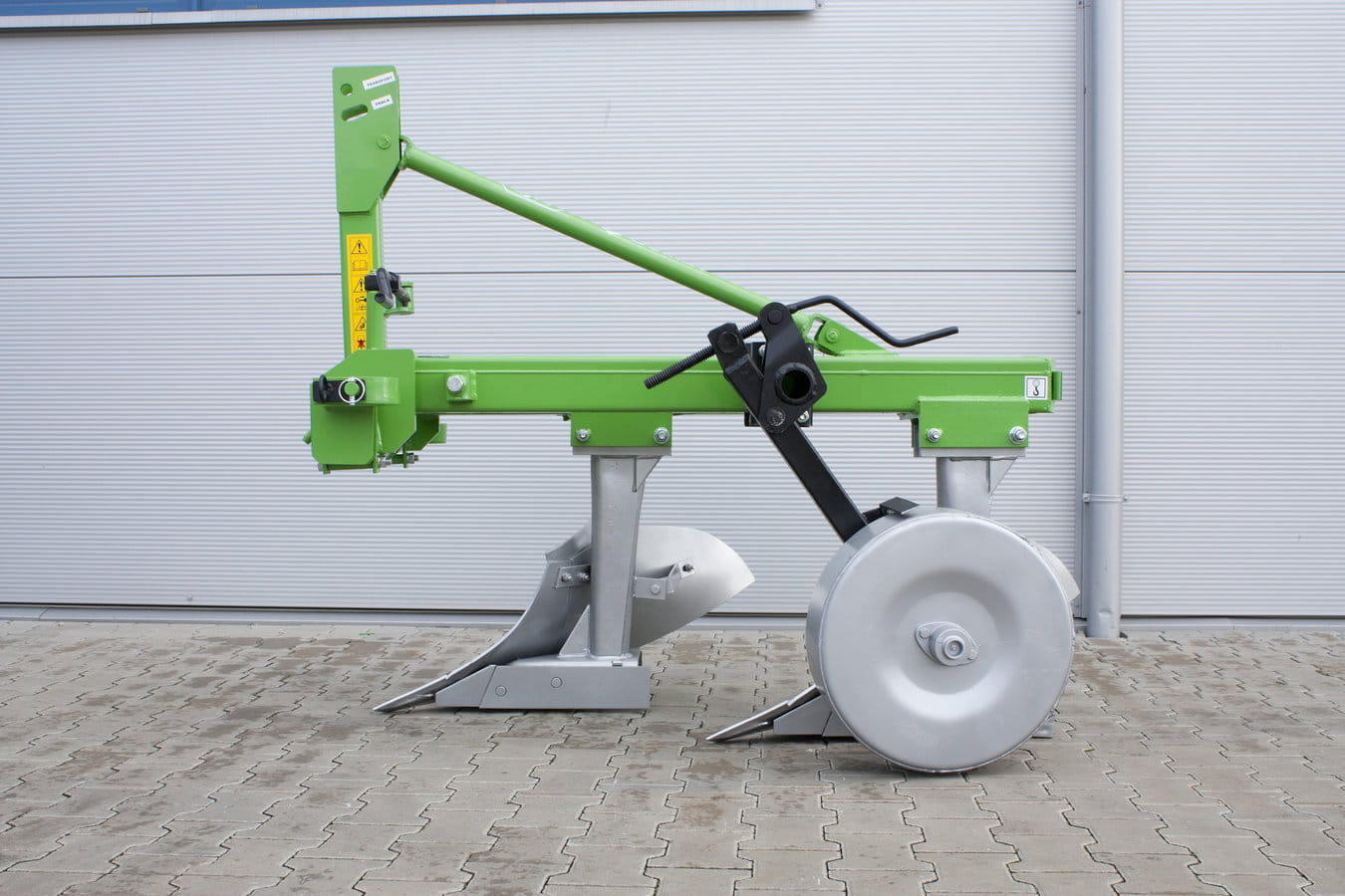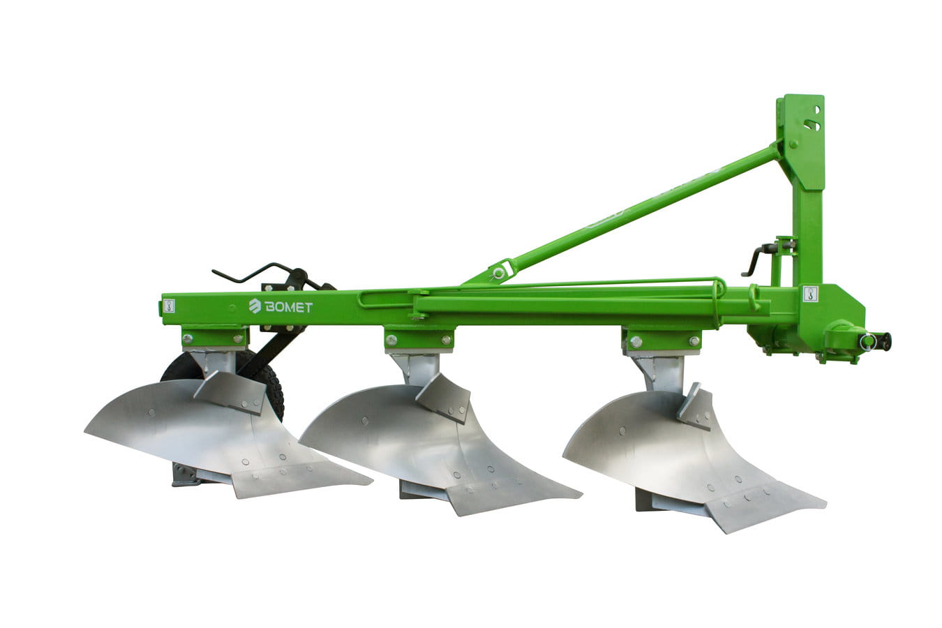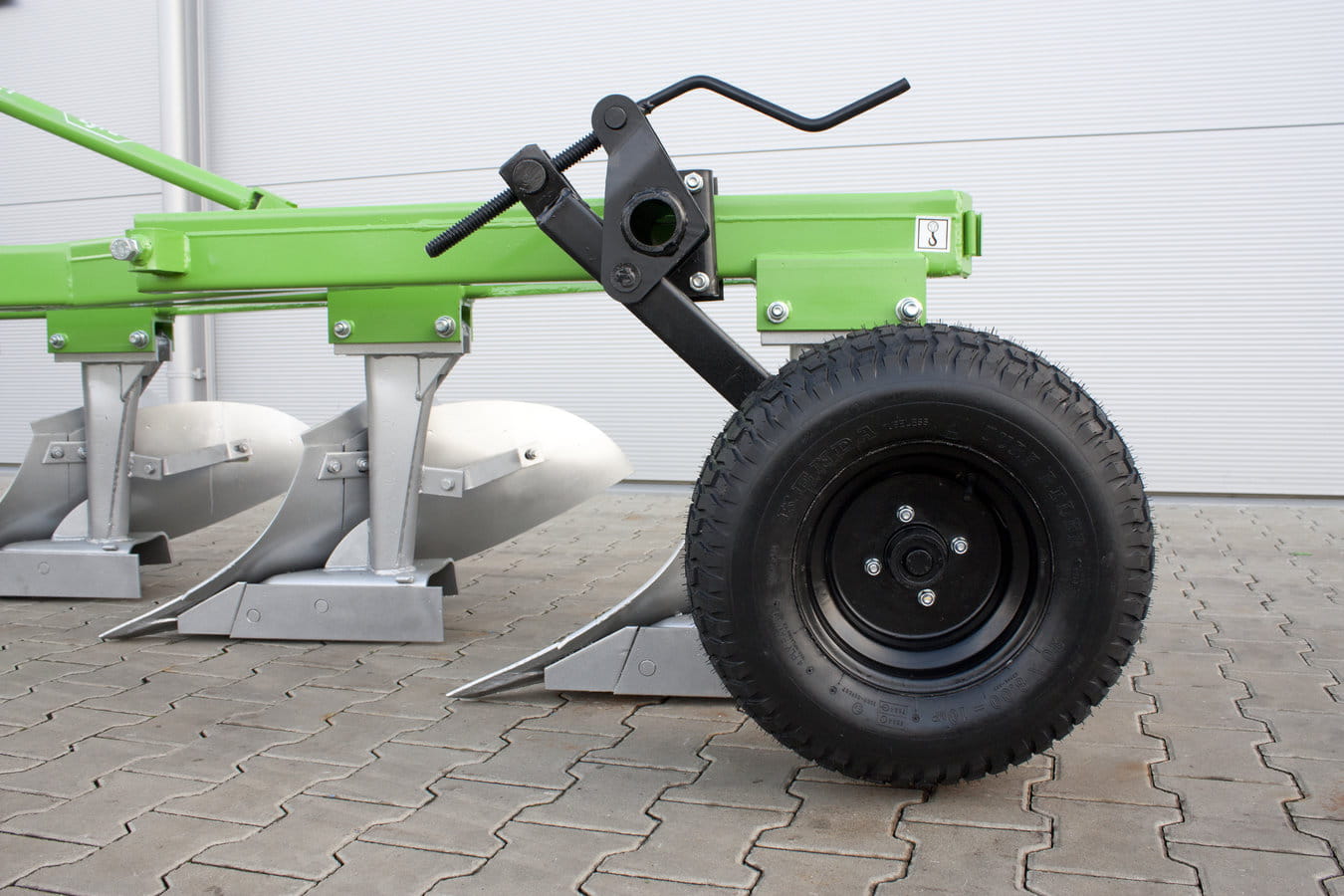 Pług wyposażony jest w śrubowy mechanizm regulacji pierwszej skiby, a głębokość pracy może być regulowana kołem podporowym stalowym lub ogumionym.